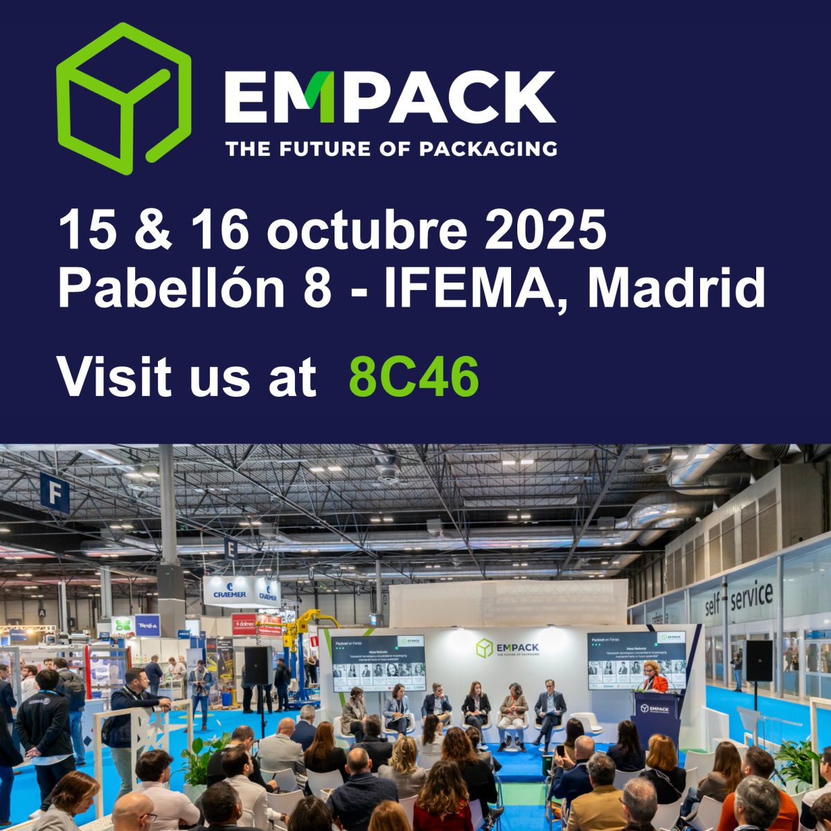 Our stand, located in the Gran Vía Hall 2, Stand B 212, was the meeting point for many visitors interested in learning about the latest trends and solutions in industrial packaging.